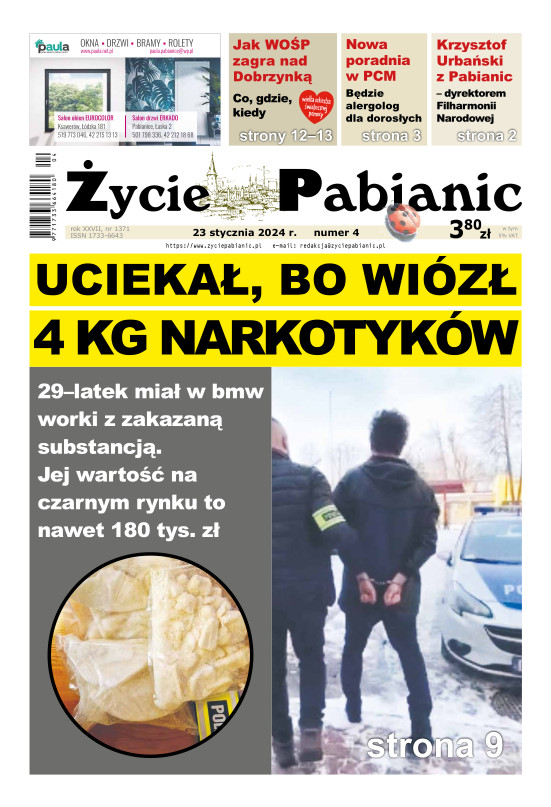 FUNKCJONARIUSZE Z PABIANICKIEJ „PATROLÓWKI” ZATRZYMALI 29-LETNIEGO MĘŻCZYZNĘ Z NIEMAL 4 KILOGRAMAMI KLEFEDRONU – ZAKAZANEGO NARKOTYKU