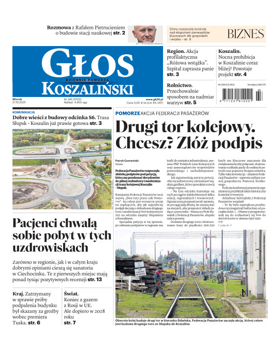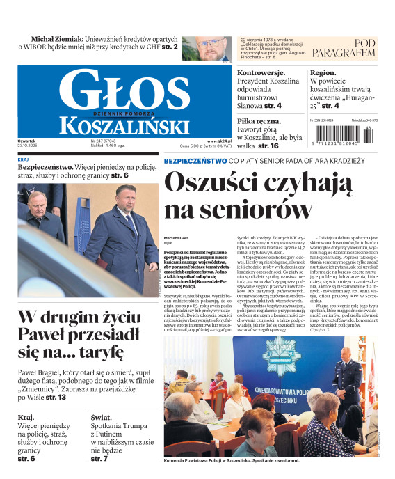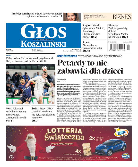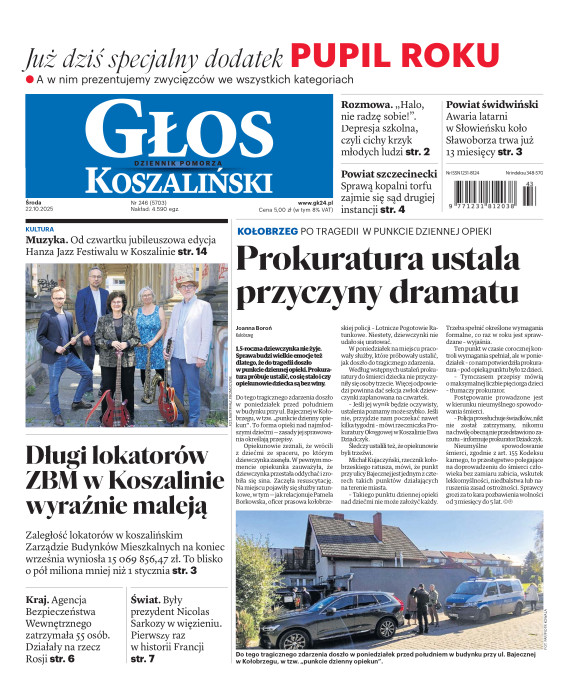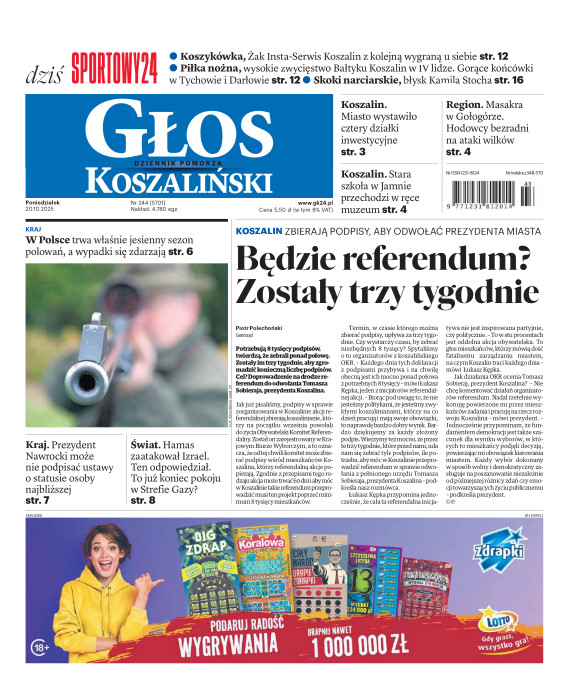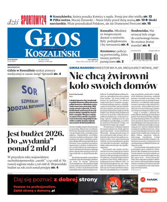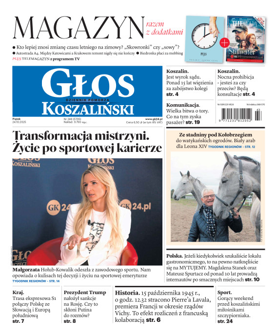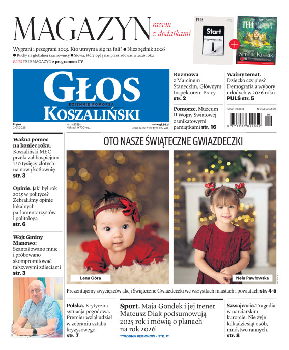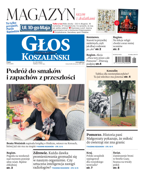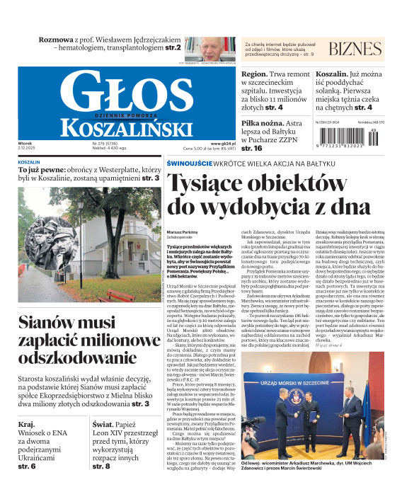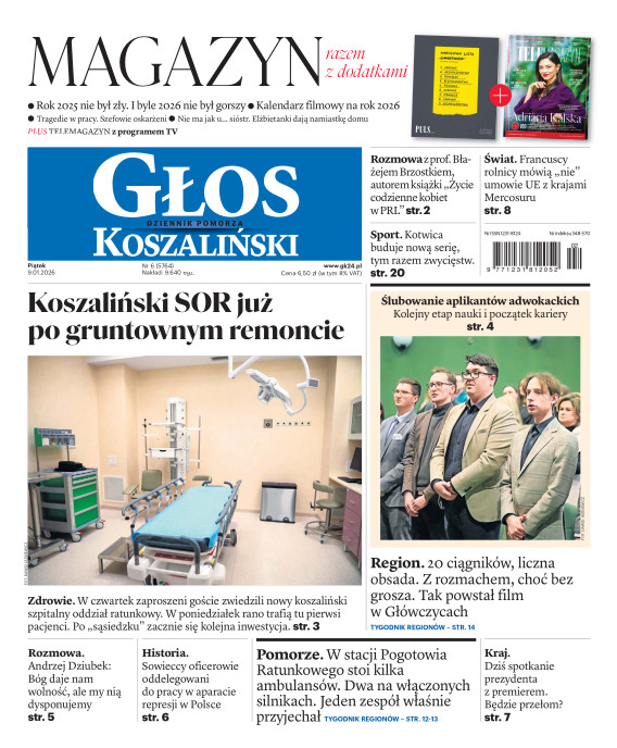 Głos Dziennik Pomorza - Głos Koszaliński to największy regionalny dziennik wydarzeń i opinii ukazujący się na terenie Pomorza Zachodniego i Środkowego. Jesteśmy gazetą lokalną mocno odwołującą się do Czytelnika związanego z jego miejscem zamieszkania. Wspieramy inicjatywy lokalne, uczestniczymy w życiu regionu i jego mieszkańców. Gazeta ukazuje się sześć razy w tygodniu. W poniedziałki oferujemy magazyn Sport24 z informacjami sportowymi z regionu, z kraju i ze świata. Piątek to duży magazyn reporterski wraz z lokalną wkładką tygodnikową i magazynem telewizyjnym. W sobotę gazeta zawiera dodatkowo 16-stronicowy „Magazyn rodzinny” na który składają się teksty i atrakcyjne tematyczne poradniki z zakresu zdrowia, kulinariów, kultury i stylu życia. Kupując wydanie elektroniczne, otrzymują Państwo dostęp do dwóch miesięczników: „Ekstra Magazynu” - w którym publikujemy najciekawsze wywiady z gwiazdami oraz ciekawymi osobistościami, felietony i reportaże spośród materiałów, które ukazały się w danym miesiącu w całej Polsce oraz „Głos ma Historia” - miesięcznik przygotowywany lokalnie przez redaktorów z Pomorza Środkowego i Zachodniego, docierających do najciekawszych materiałów opisujących dzieje naszej ziemi na przestrzeni wieków, które niejednego pasjonata historii potrafią zaskoczyć i zainteresować, a w młodszych czytelnikach zaszczepić ciekawość i przywiązanie do historii własnego regionu.