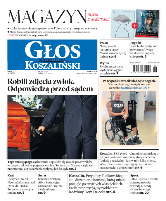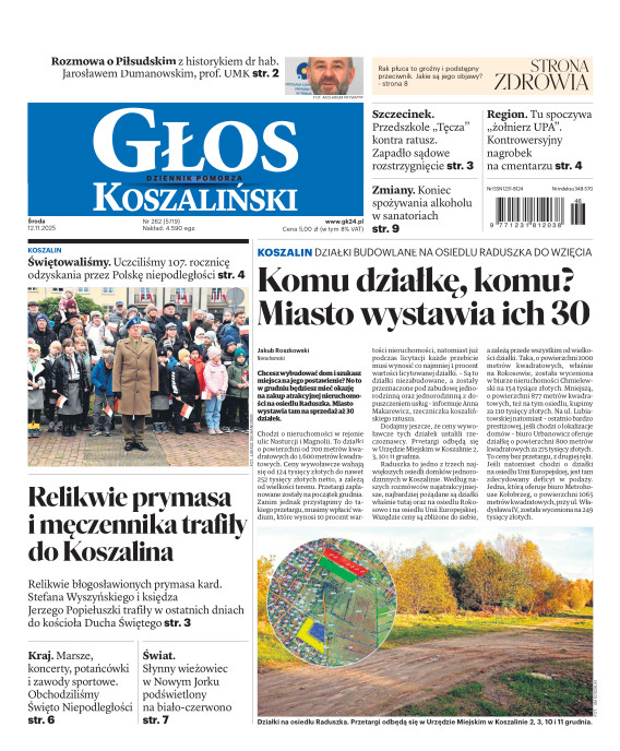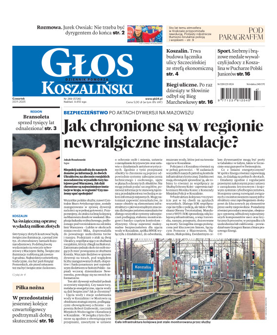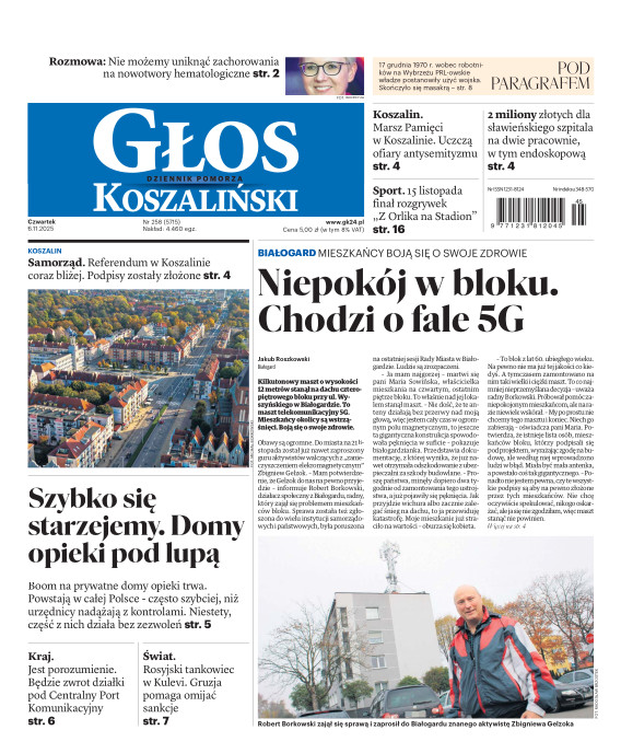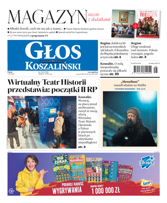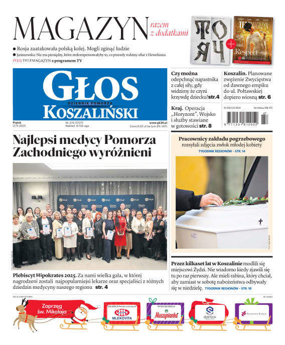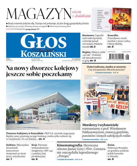 Głos Dziennik Pomorza - Głos Koszaliński to największy regionalny dziennik wydarzeń i opinii ukazujący się na terenie Pomorza Zachodniego i Środkowego. Jesteśmy gazetą lokalną mocno odwołującą się do Czytelnika związanego z jego miejscem zamieszkania. Wspieramy inicjatywy lokalne, uczestniczymy w życiu regionu i jego mieszkańców. Gazeta ukazuje się sześć razy w tygodniu. W poniedziałki oferujemy magazyn Sport24 z informacjami sportowymi z regionu, z kraju i ze świata. Piątek to duży magazyn reporterski wraz z lokalną wkładką tygodnikową i magazynem telewizyjnym. W sobotę gazeta zawiera dodatkowo 16-stronicowy „Magazyn rodzinny” na który składają się teksty i atrakcyjne tematyczne poradniki z zakresu zdrowia, kulinariów, kultury i stylu życia. Kupując wydanie elektroniczne, otrzymują Państwo dostęp do dwóch miesięczników: „Ekstra Magazynu” - w którym publikujemy najciekawsze wywiady z gwiazdami oraz ciekawymi osobistościami, felietony i reportaże spośród materiałów, które ukazały się w danym miesiącu w całej Polsce oraz „Głos ma Historia” - miesięcznik przygotowywany lokalnie przez redaktorów z Pomorza Środkowego i Zachodniego, docierających do najciekawszych materiałów opisujących dzieje naszej ziemi na przestrzeni wieków, które niejednego pasjonata historii potrafią zaskoczyć i zainteresować, a w młodszych czytelnikach zaszczepić ciekawość i przywiązanie do historii własnego regionu.