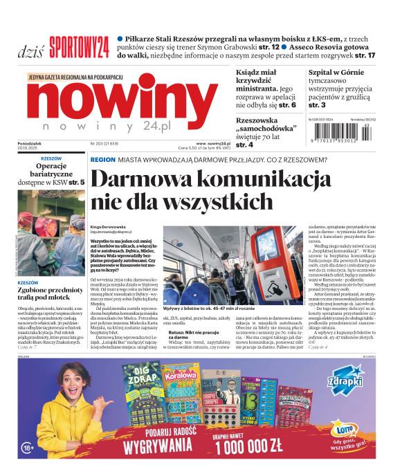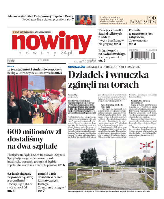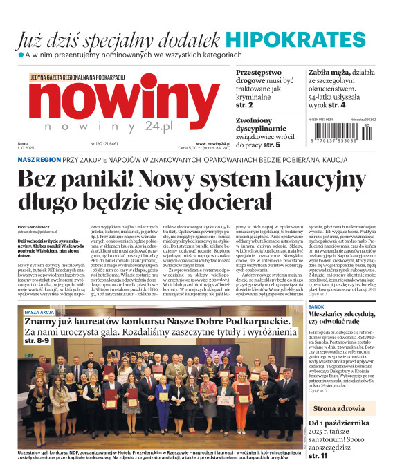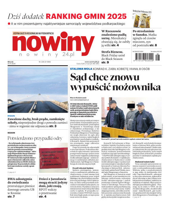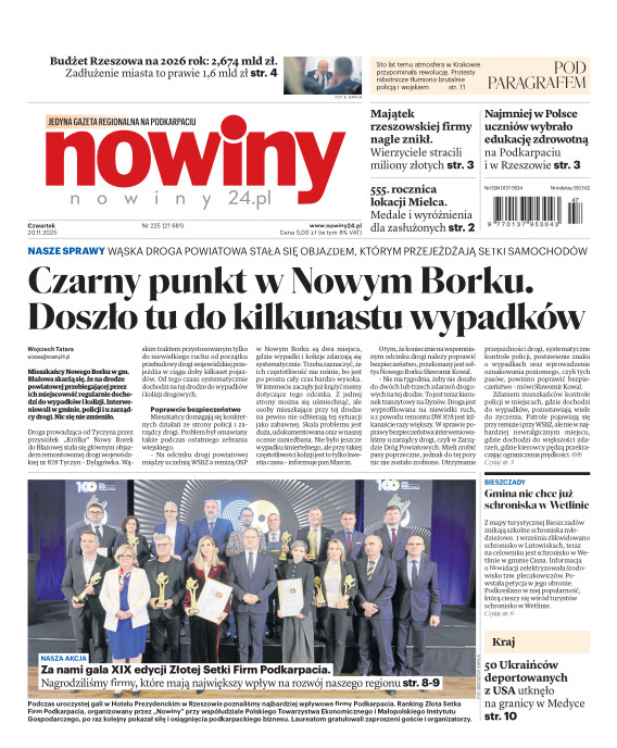 Nowiny to regionalny dziennik o charakterze informacyjno-publicystycznym. Jesteśmy absolutnym liderem na swoim rynku pod względem czytelnictwa i sprzedaży. Gazeta jest postrzegana, jako najbardziej opiniotwórczy dziennik lokalny i ceniony nośnik reklamy. Lokalność, wiarygodność, użyteczność - to najważniejsze cechy, które opisują nasz charakter. Swym zasięgiem obejmujemy województwo podkarpackie i obrzeża województw: lubelskiego, świętokrzyskiego i małopolskiego. E- wydanie Nowin pozwala na prosty, szybki i wygodny dostęp do bieżących i archiwalnych numerów dziennika.
