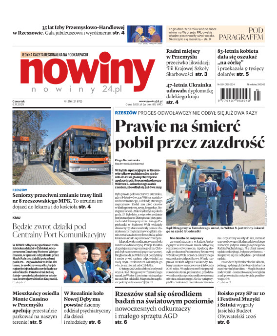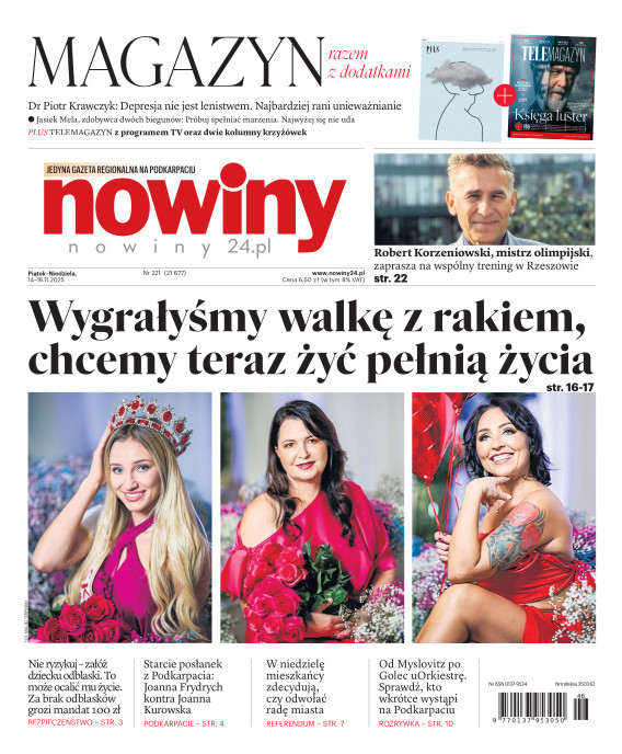 Nowiny to regionalny dziennik o charakterze informacyjno-publicystycznym. Jesteśmy absolutnym liderem na swoim rynku pod względem czytelnictwa i sprzedaży. Gazeta jest postrzegana, jako najbardziej opiniotwórczy dziennik lokalny i ceniony nośnik reklamy. Lokalność, wiarygodność, użyteczność - to najważniejsze cechy, które opisują nasz charakter. Swym zasięgiem obejmujemy województwo podkarpackie i obrzeża województw: lubelskiego, świętokrzyskiego i małopolskiego. E- wydanie Nowin pozwala na prosty, szybki i wygodny dostęp do bieżących i archiwalnych numerów dziennika.