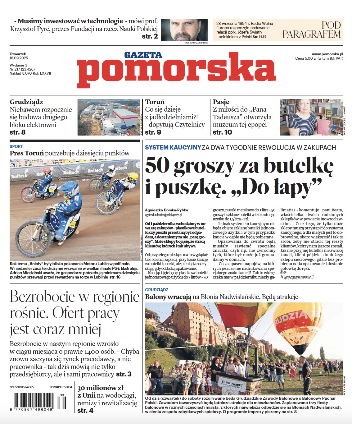 Gazeta Pomorska jest jednym z największych dzienników regionalnych w Polsce. Swoim zasięgiem obejmuje województwo kujawsko-pomorskie oraz kilka gmin województw ościennych. Codziennie, w sześciu lokalnych wydaniach, porusza tematy najważniejsze dla mieszkańców regionu. Publikuje aktualne wydarzenia, inicjuje akcje społeczne, kulturalne i biznesowe, aktywnie uczestniczy w życiu społeczności.