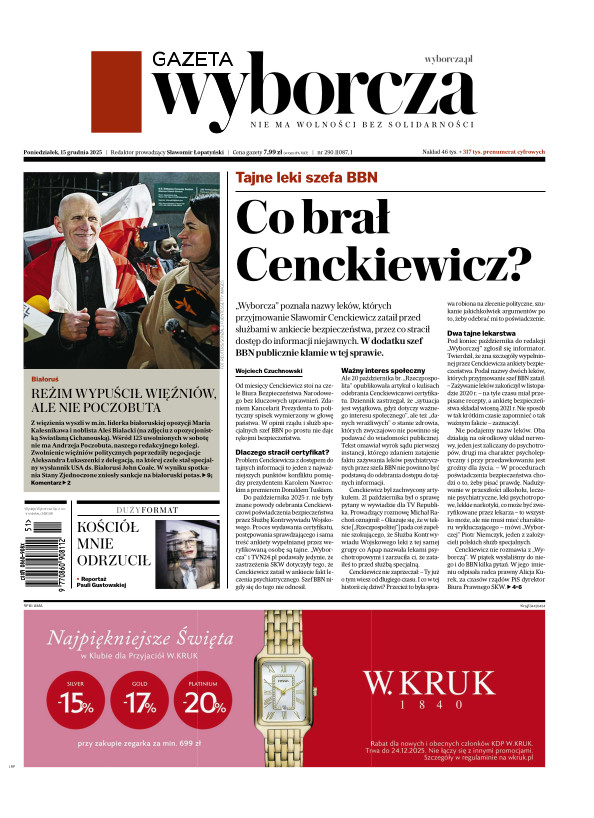 Gazeta Wyborcza (wyd. Kraków, Katowice, Wrocław) 288 (12.12.2025)