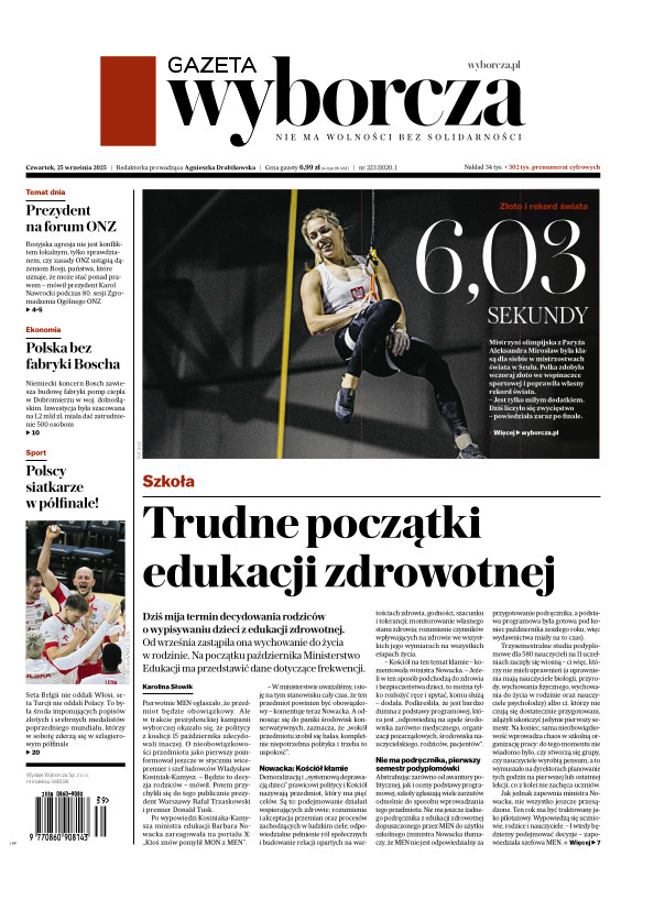 Gazeta Wyborcza (wyd. Stołeczna) 223 (25.09.2025)