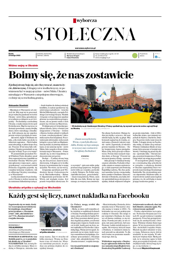 eprasa.pl ▸ Gazeta Wyborcza (wyd. Stołeczna) ▸ Gazeta Wyborcza (wyd. Stołeczna) 44 (23.02.2022)