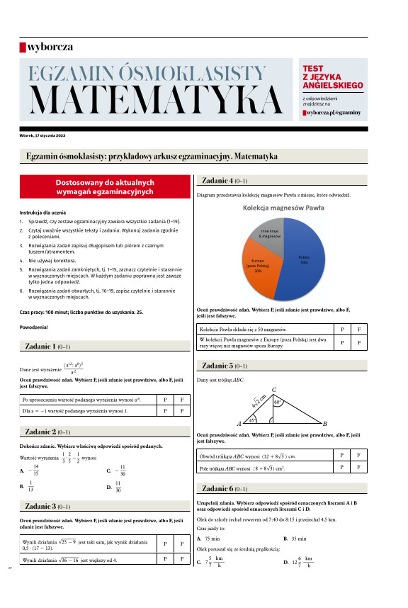 Dodatki: Warszawa, Mój biznes, testy 8 klasa matematyka