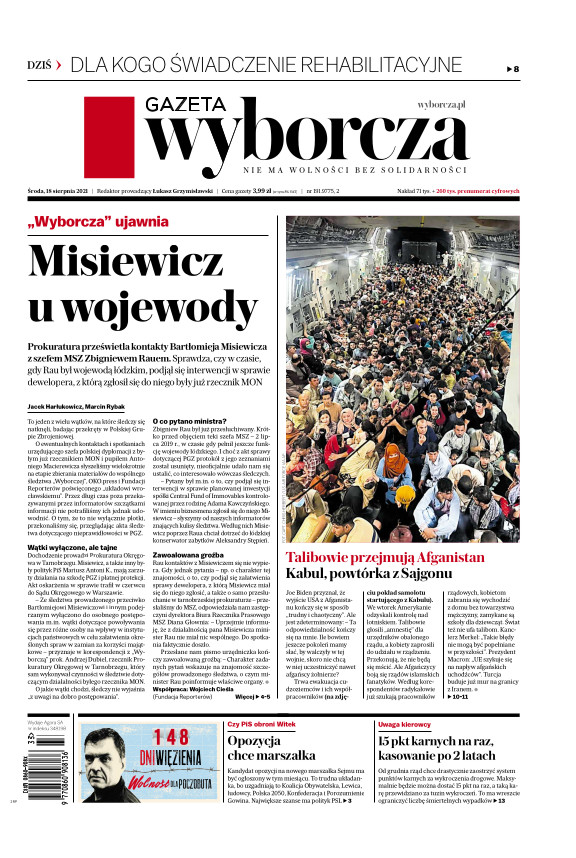Gazeta Wyborcza (wyd. Stołeczna) 191 (18.08.2021)