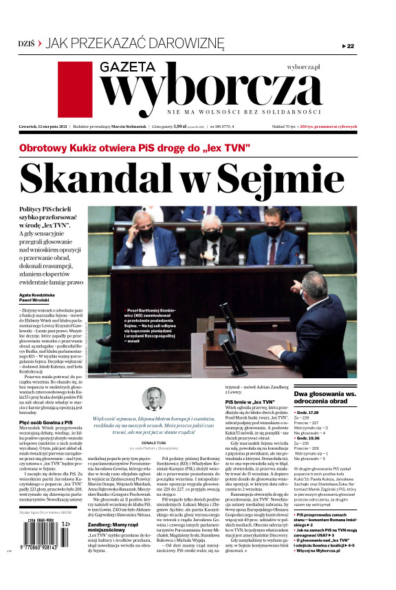 Gazeta Wyborcza (wyd. Stołeczna) 186 (12.08.2021)