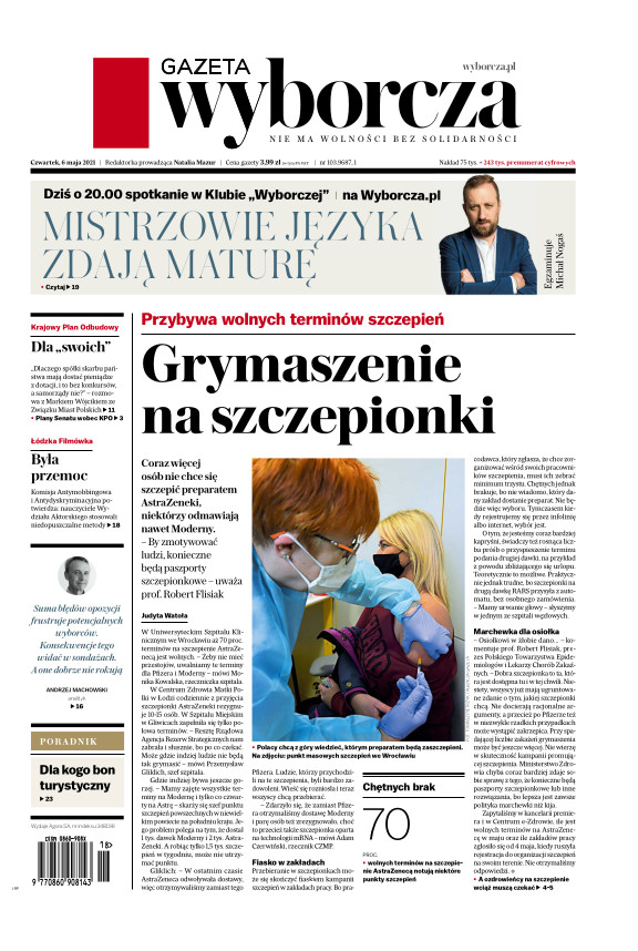 Gazeta Wyborcza (wyd. Stołeczna) 103 (06.05.2021)