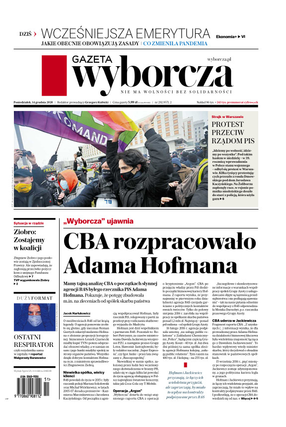 Gazeta Wyborcza (wyd. Stołeczna) 292 (14.12.2020)