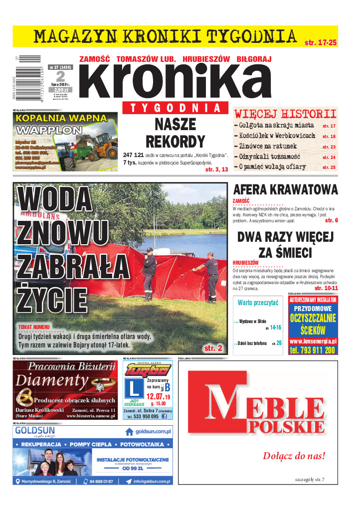 TEMAT NUMERU WODA ZNOWU ZABRAŁA ŻYCIE ZAMOŚĆ AFERA KRAWATOWA HRUBIESZÓW DWA RAZY WIĘCEJ ZA ŚMIECI
