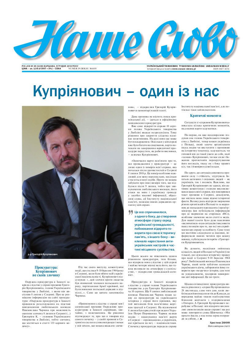 КУПРІЯНОВИЧ – ОДИН ІЗ НАС