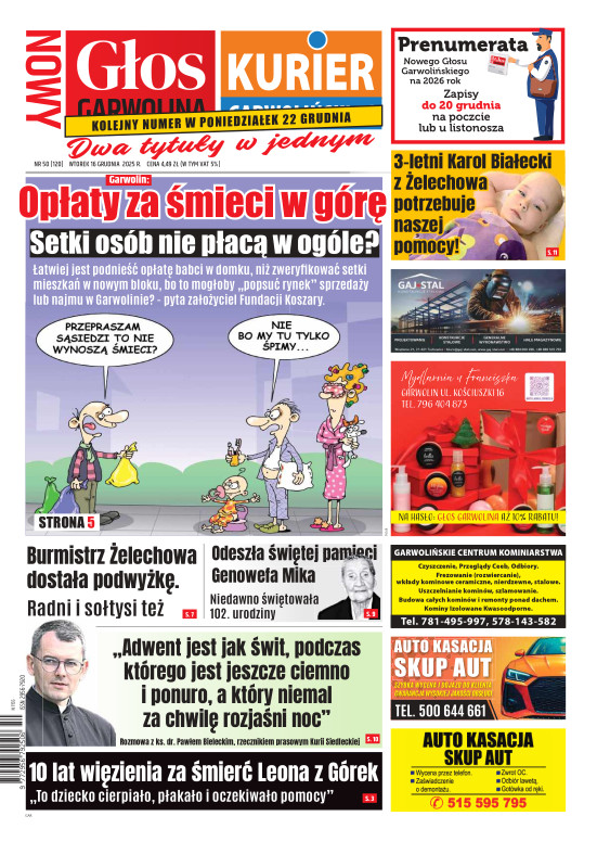 "Nowy Głos Garwolina" to tygodnik ukazujący się we wtorek na terenie powiatu Garwolińskiego. Gazeta porusza zagadnienia lokalne i społeczne dotyczące mieszkańców regionu. codzienne sprawy są dla nas najważniejsze. Wraz z gazetą aktywny jest również portal www.kuriergarwolinski.pl. Wydawcą tygodnika jest Grupa Wydawnicza Wspólnota – największa sieć portali i gazet lokalnych w Polsce. Wydawnictwo istnieje od 2001 r. Tytuły prasowe Wydawnictwa i jego dziennikarze często byli nagradzani w ogólnopolskich konkursach dla niezależnej prasy lokalnej. Wydawnictwo jest członkiem Izby Prasy Lokalnej i Stowarzyszenia Mediów Lokalnych (właściciel Wydawnictwa – Mateusz Orzechowski jest wiceprezesem SML).