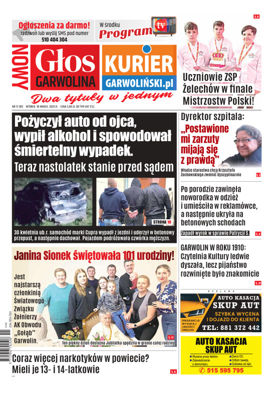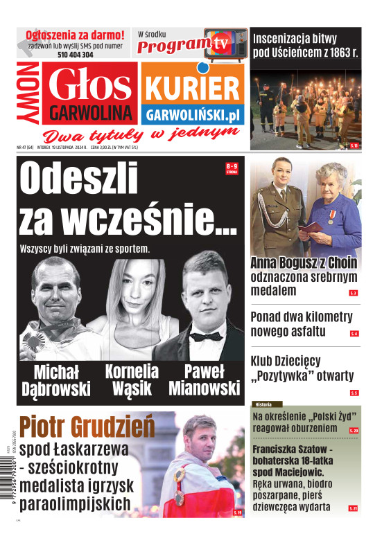 "Nowy Głos Garwolina" to tygodnik ukazujący się we wtorek na terenie powiatu Garwolińskiego. Gazeta porusza zagadnienia lokalne i społeczne dotyczące mieszkańców regionu. codzienne sprawy są dla nas najważniejsze. Wraz z gazetą aktywny jest również portal www.kuriergarwolinski.pl. Wydawcą tygodnika jest Grupa Wydawnicza Wspólnota – największa sieć portali i gazet lokalnych w Polsce. Wydawnictwo istnieje od 2001 r. Tytuły prasowe Wydawnictwa i jego dziennikarze często byli nagradzani w ogólnopolskich konkursach dla niezależnej prasy lokalnej. Wydawnictwo jest członkiem Izby Prasy Lokalnej i Stowarzyszenia Mediów Lokalnych (właściciel Wydawnictwa – Mateusz Orzechowski jest wiceprezesem SML).
