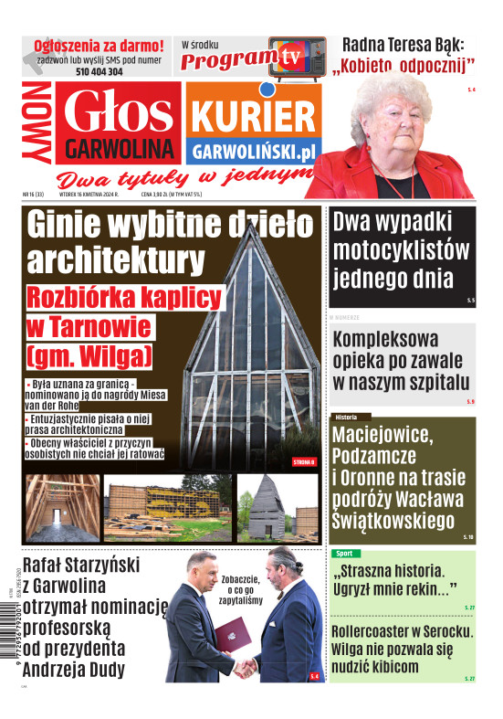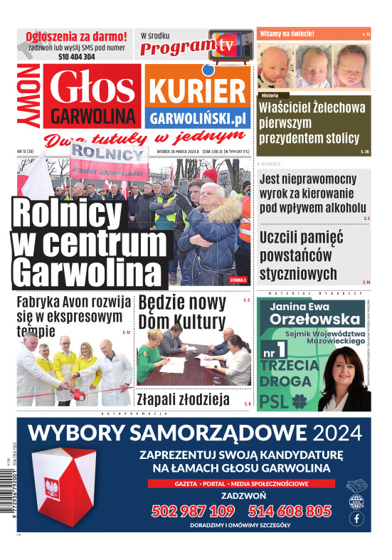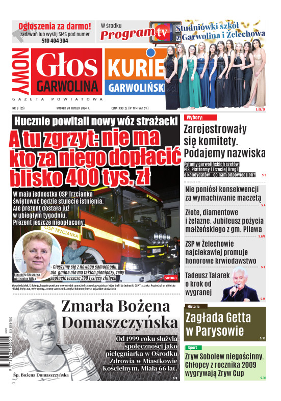 "Nowy Głos Garwolina" to tygodnik ukazujący się we wtorek na terenie powiatu Garwolińskiego. Gazeta porusza zagadnienia lokalne i społeczne dotyczące mieszkańców regionu. codzienne sprawy są dla nas najważniejsze. Wraz z gazetą aktywny jest również portal www.kuriergarwolinski.pl. Wydawcą tygodnika jest Grupa Wydawnicza Wspólnota – największa sieć portali i gazet lokalnych w Polsce. Wydawnictwo istnieje od 2001 r. Tytuły prasowe Wydawnictwa i jego dziennikarze często byli nagradzani w ogólnopolskich konkursach dla niezależnej prasy lokalnej. Wydawnictwo jest członkiem Izby Prasy Lokalnej i Stowarzyszenia Mediów Lokalnych (właściciel Wydawnictwa – Mateusz Orzechowski jest wiceprezesem SML).