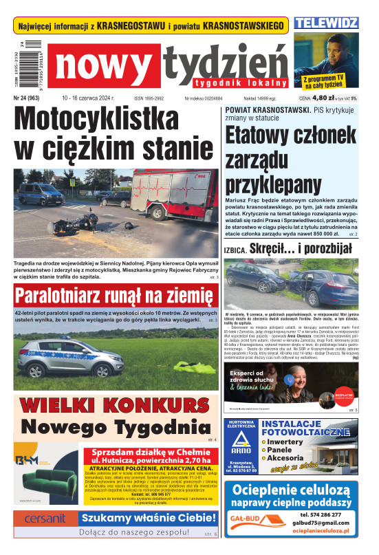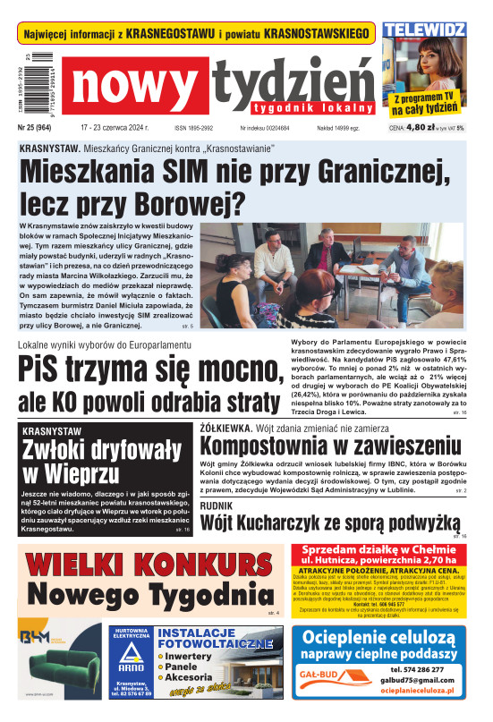 Nowy Tydzień - to sieć tygodników lokalnych ukazujących się na terenie powiatów chełmskiego, włodawskiego, krasnostawskiego oraz na terenie miasta Lublin i Świdnik. Gazetę opracowuje profesjonalny zespół doświadczonych dziennikarzy i grafików, którzy tworząc Nowy Tydzień, informują lokalną społeczność o wszystkich ważnych wydarzeniach z życia jej miast i powiatów Tygodnik dociera wszędzie tam, gdzie potrzebują tego jego czytelnicy. Jest zawsze najbliżej spraw lokalnych społeczności i właśnie na tym buduje swój sukces. Na jego stronach poza informacjami z Chełma, Włodawy, Krasnegostawu, Lublina oraz Świdnika, Czytelnicy znajdą kolumny sportowe, motoryzacyjne, kulturalne, studenckie, medyczne i ogłoszeniowe. Dodatkowym atutem jest kolorowy dodatek telewizyjny stanowiący integralną część wszystkich wydań Nowego Tygodnia.