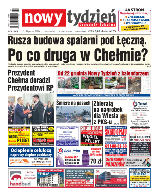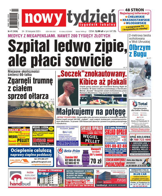 Nowy Tydzień - to sieć tygodników lokalnych ukazujących się na terenie powiatów chełmskiego, włodawskiego, krasnostawskiego oraz na terenie miasta Lublin i Świdnik. Gazetę opracowuje profesjonalny zespół doświadczonych dziennikarzy i grafików, którzy tworząc Nowy Tydzień, informują lokalną społeczność o wszystkich ważnych wydarzeniach z życia jej miast i powiatów Tygodnik dociera wszędzie tam, gdzie potrzebują tego jego czytelnicy. Jest zawsze najbliżej spraw lokalnych społeczności i właśnie na tym buduje swój sukces. Na jego stronach poza informacjami z Chełma, Włodawy, Krasnegostawu, Lublina oraz Świdnika, Czytelnicy znajdą kolumny sportowe, motoryzacyjne, kulturalne, studenckie, medyczne i ogłoszeniowe. Dodatkowym atutem jest kolorowy dodatek telewizyjny stanowiący integralną część wszystkich wydań Nowego Tygodnia.