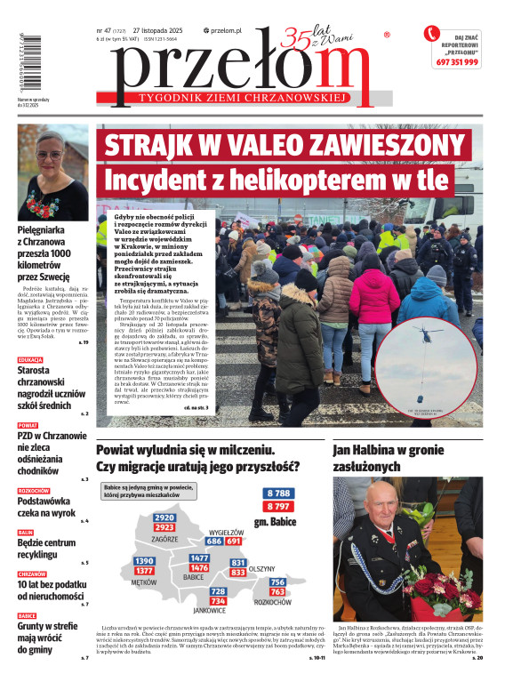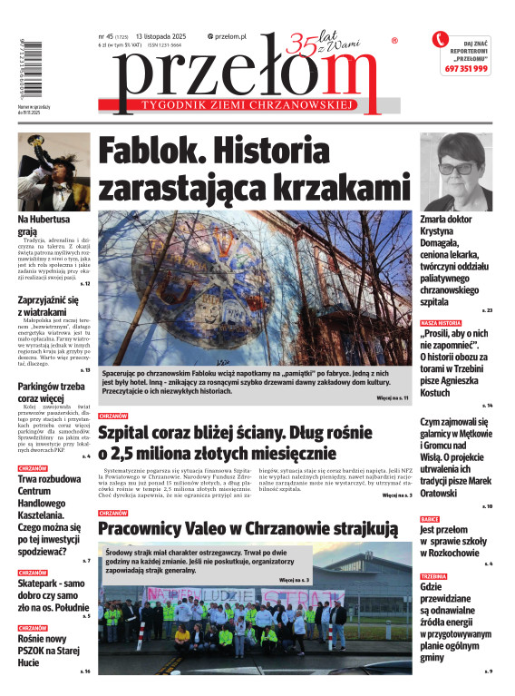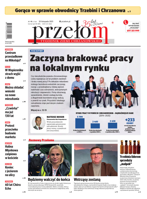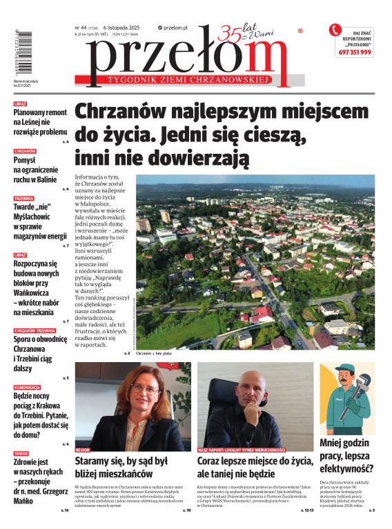 „Przełom” jest jedną z najlepszych i największych gazet lokalnych w Polsce. Powstał 16 września 1990 r. i ukazuje się nieprzerwanie do dziś. Zasięgiem obejmuje obecnie pięć gmin powiatu chrzanowskiego: Alwernię, Babice, Chrzanów, Libiąż i Trzebinię oraz gminę Krzeszowice w powiecie krakowskim i gminę Chełmek w powiecie oświęcimskim. W 1994 r. zdobył I nagrodę IDEE (Fundacji na Rzecz Demokracji w Europie Wschodniej, a w 2000 r. tytuł gazety 10-lecia sygnowany przez premiera rządu RP i ministra kultury. Tytuł dwukrotnie nagradzany przez Narodowy Fundusz Ochrony Środowiska, w 2000 r. zdobył I nagrodę w konkursie dla gazet mających największy wpływ na kształtowanie świadomości ekologicznej. * E-wydanie online (flash, html, html5)