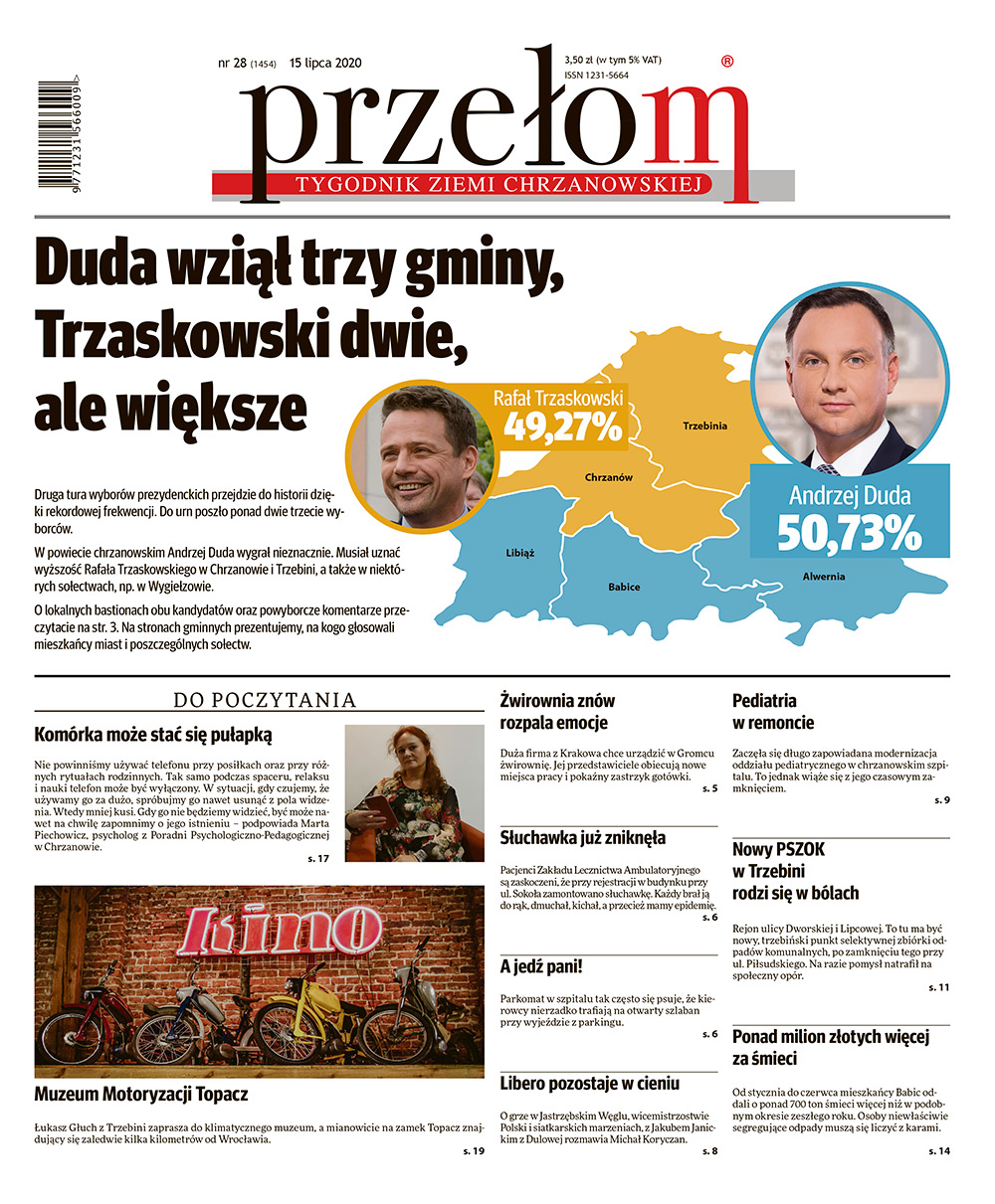 „Przełom” jest jedną z najlepszych i największych gazet lokalnych w Polsce. Powstał 16 września 1990 r. i ukazuje się nieprzerwanie do dziś. Zasięgiem obejmuje obecnie pięć gmin powiatu chrzanowskiego: Alwernię, Babice, Chrzanów, Libiąż i Trzebinię oraz gminę Krzeszowice w powiecie krakowskim i gminę Chełmek w powiecie oświęcimskim. W 1994 r. zdobył I nagrodę IDEE (Fundacji na Rzecz Demokracji w Europie Wschodniej, a w 2000 r. tytuł gazety 10-lecia sygnowany przez premiera rządu RP i ministra kultury. Tytuł dwukrotnie nagradzany przez Narodowy Fundusz Ochrony Środowiska, w 2000 r. zdobył I nagrodę w konkursie dla gazet mających największy wpływ na kształtowanie świadomości ekologicznej. * E-wydanie online (flash, html, html5)