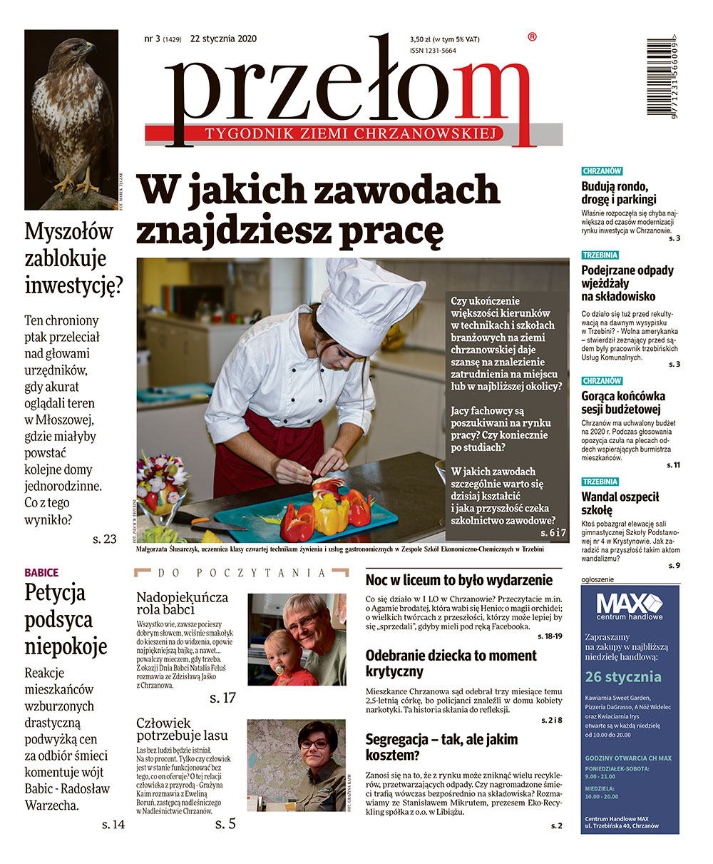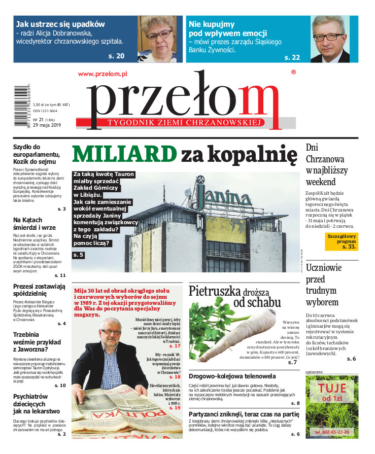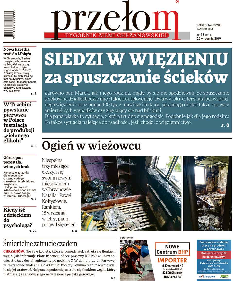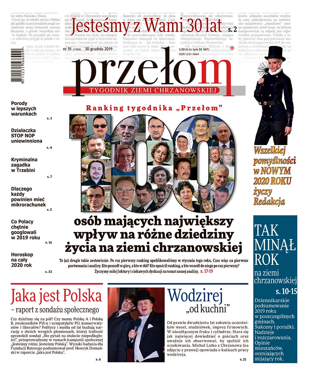 „Przełom” jest jedną z najlepszych i największych gazet lokalnych w Polsce. Powstał 16 września 1990 r. i ukazuje się nieprzerwanie do dziś. Zasięgiem obejmuje obecnie pięć gmin powiatu chrzanowskiego: Alwernię, Babice, Chrzanów, Libiąż i Trzebinię oraz gminę Krzeszowice w powiecie krakowskim i gminę Chełmek w powiecie oświęcimskim. W 1994 r. zdobył I nagrodę IDEE (Fundacji na Rzecz Demokracji w Europie Wschodniej, a w 2000 r. tytuł gazety 10-lecia sygnowany przez premiera rządu RP i ministra kultury. Tytuł dwukrotnie nagradzany przez Narodowy Fundusz Ochrony Środowiska, w 2000 r. zdobył I nagrodę w konkursie dla gazet mających największy wpływ na kształtowanie świadomości ekologicznej. * E-wydanie online (flash, html, html5)