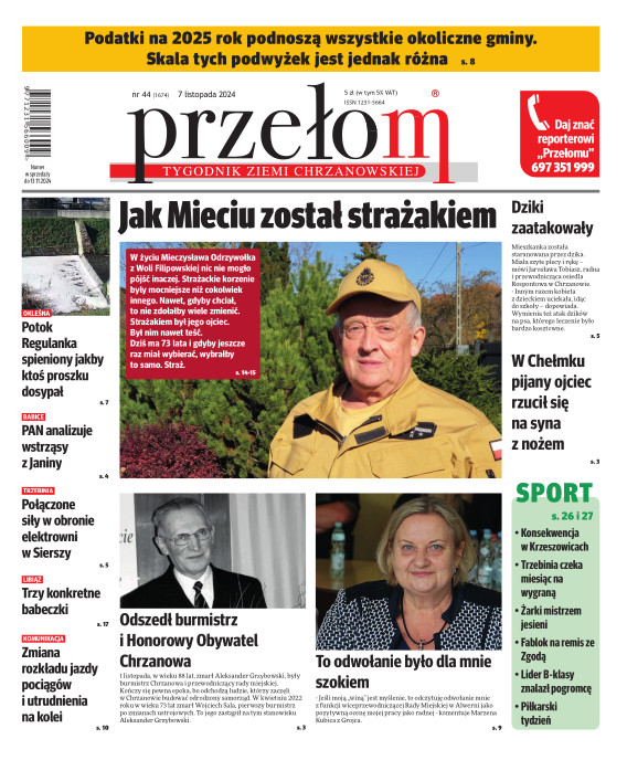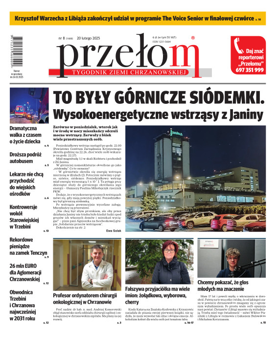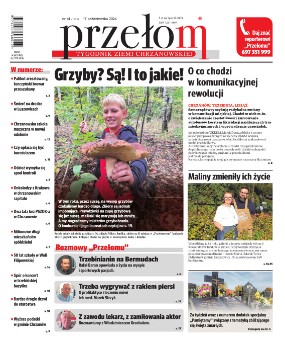 „Przełom” jest jedną z najlepszych i największych gazet lokalnych w Polsce. Powstał 16 września 1990 r. i ukazuje się nieprzerwanie do dziś. Zasięgiem obejmuje obecnie pięć gmin powiatu chrzanowskiego: Alwernię, Babice, Chrzanów, Libiąż i Trzebinię oraz gminę Krzeszowice w powiecie krakowskim i gminę Chełmek w powiecie oświęcimskim. W 1994 r. zdobył I nagrodę IDEE (Fundacji na Rzecz Demokracji w Europie Wschodniej, a w 2000 r. tytuł gazety 10-lecia sygnowany przez premiera rządu RP i ministra kultury. Tytuł dwukrotnie nagradzany przez Narodowy Fundusz Ochrony Środowiska, w 2000 r. zdobył I nagrodę w konkursie dla gazet mających największy wpływ na kształtowanie świadomości ekologicznej. * E-wydanie online (flash, html, html5)