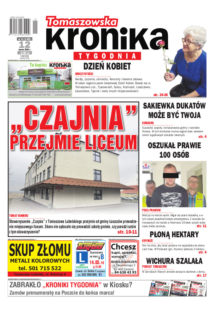TEMAT NUMERU „CZAJNIA” PRZEJMIE LICEUM KONKURS SAKIEWKA DUKATÓW MOŻE BYĆ TWOJA POZA PRAWEM OSZUKAŁ PRAWIE 100 OSÓB KRYNICE PŁONĄ HEKTARY POWIAT TOMASZÓW WICHURA SZALAŁA