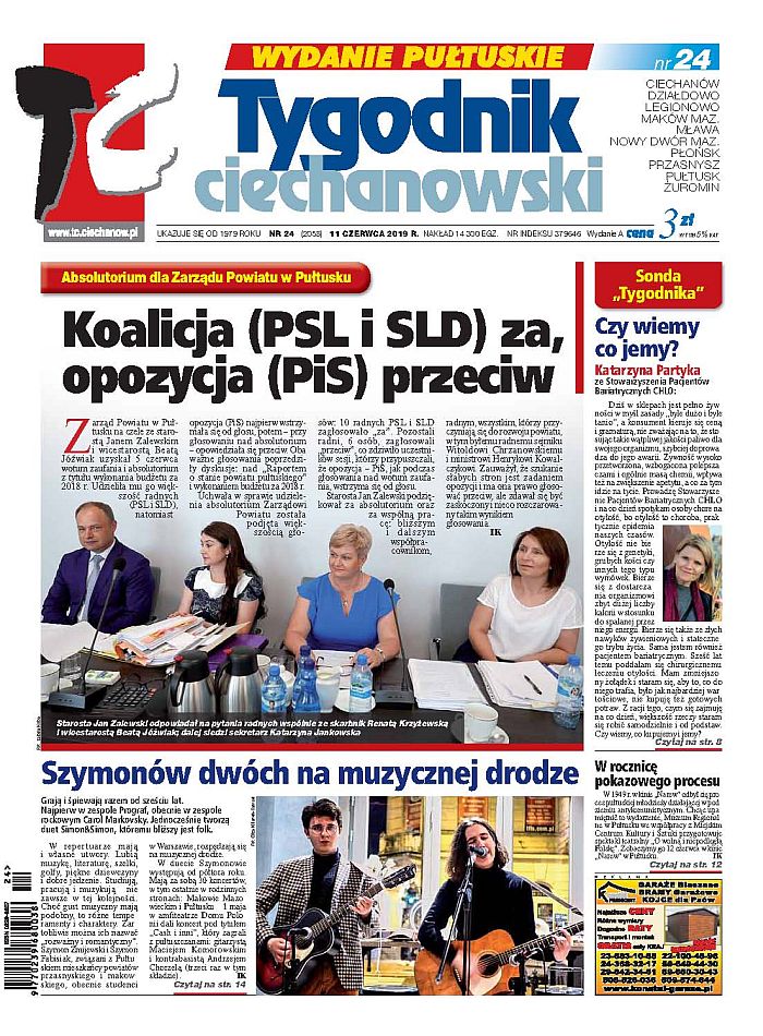 ABSOLUTORIUM DLA ZARZĄDU POWIATU W PUŁTUSKU KOALICJA (PSL I SLD) ZA, OPOZYCJA (PIS) PRZECIW SZYMONÓW DWÓCH NA MUZYCZNEJ DRODZE SONDA „TYGODNIKA” CZY WIEMY CO JEMY? W ROCZNICĘ POKAZOWEGO PROCESU