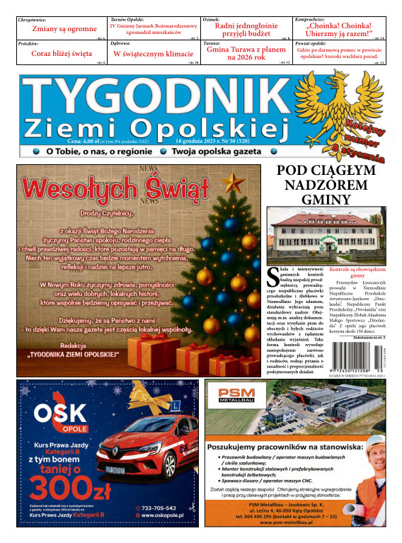 Tygodnik Ziemi OpolskiejGazeta „TYGODNIK Ziemi Opolskiej”- ukazuje się na terenie gmin powiatu opolskiego. To lider wśród tygodników lokalnych w powiecie opolskim. Ukazuje się w każdy czwartek i opisuje wydarzenia związane z miastem Opole jak i powiatem opolskim. Dostępna jest w Opolu oraz gminach powiatu opolskiego. Nakład TZO wynosi ponad 4400 szt., sprzedaż oscyluje w granicach 80-93 %. Grupa docelowa to 150 tys. mieszkańców tychże gmin. Wraz z gazetą aktywny jest również portal www.tygodnikziemiopolskiej.info
