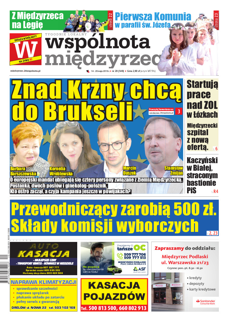 ZNAD KRZNY CHCĄ DO BRUKSELI Z MIĘDZYRZECA NA LEGIĘ PIERWSZA KOMUNIA W PARAFII ŚW. JÓZEFA PRZEWODNICZĄCY ZAROBIĄ 500 ZŁ. SKŁADY KOMISJI WYBORCZYCH